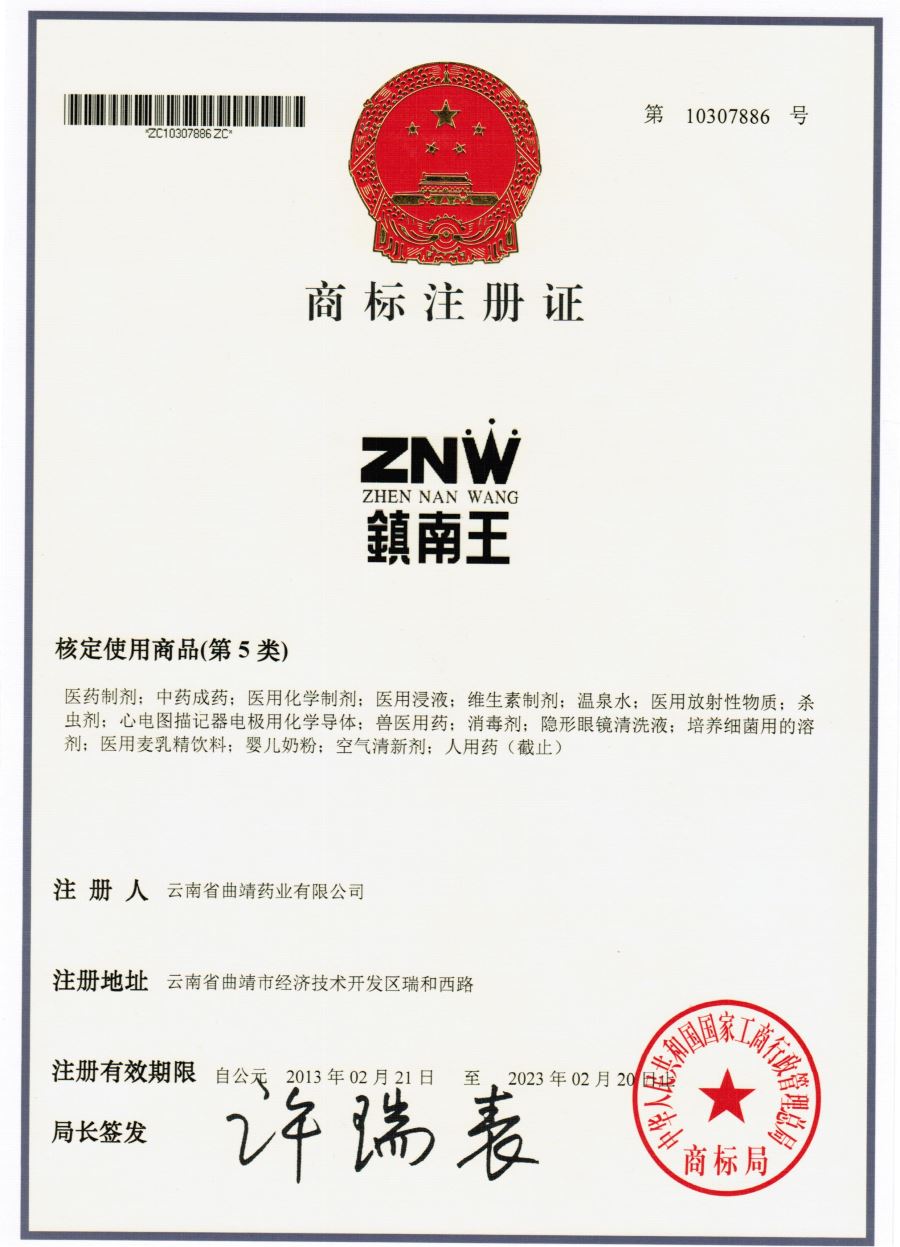 鎮(zhèn)南王第5類注冊商標(biāo)